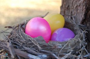 - ... hoppelt der Osterhase schon mal über den Quellenhof und versteckt Überraschungen für die Kinder