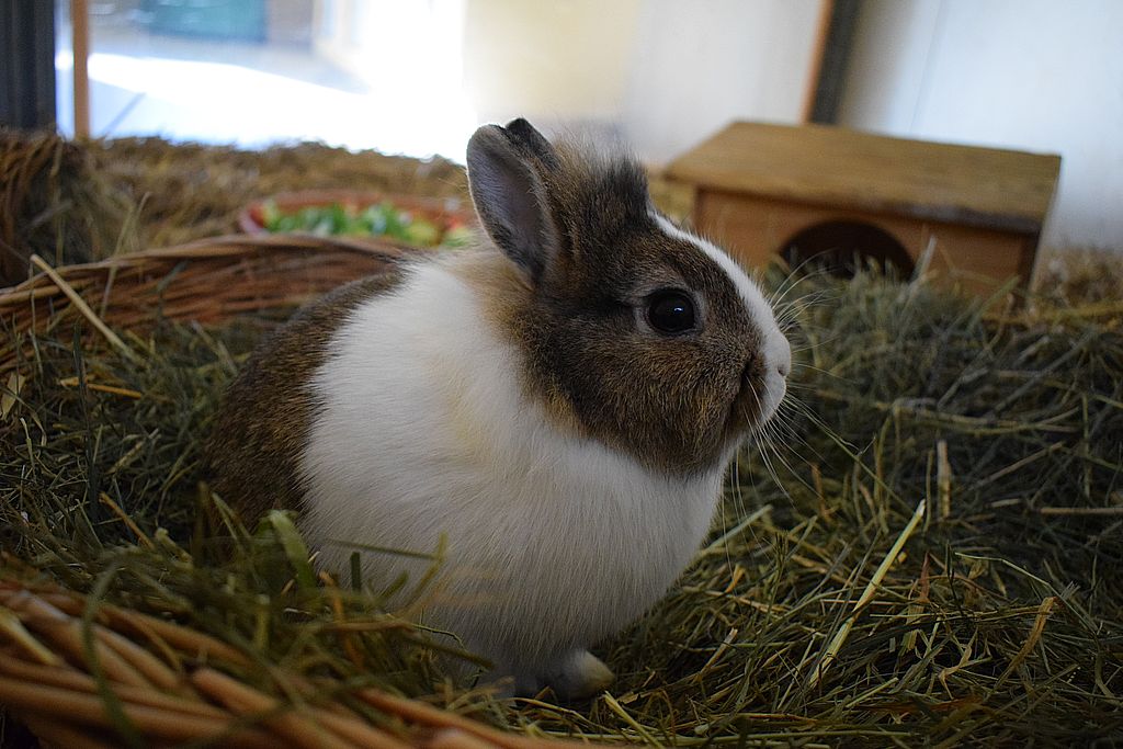 Die kleine Kaninchendame ist gegen Myxomatose und RHD geimpft. Außerdem wurde sie erfolgreich gegen Kokzidien behandelt. Connie lebt derzeit mit zwei weiteren Kaninchen zusammen in einem Gehege. Sie wird gerade an die Außenhaltung gewöhnt. In der Gruppe ist sie die Chefin und hat diese Rolle bei der Vergesellschaftung konsequent übernommen. Dabei nutzt sie ihre ranghohe Position nicht aus, sodass die Gruppe sehr harmonisch zusammenlebt.