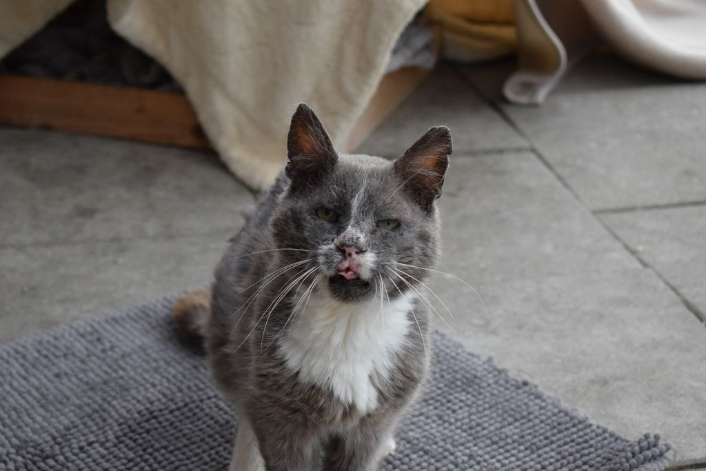 Levent leidet an einer Leberinsuffizienz, die wir mit Tabletten gut behandeln können. Die Einnahme der Medikamente klappt fast von alleine, besonders wenn man sie ihm etwas Leberwurst gibt. Seine Rolllider an beiden Augen wurden operiert. Die Entzündungen und das Tränen sind verschwunden, und seine Augen machen keine Probleme mehr. Sein Fell wächst langsam nach, sodass er bald wieder wie ein" normaler" Kater aussieht.