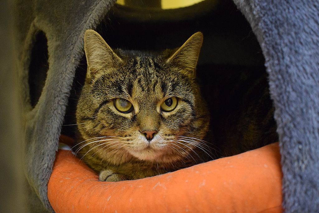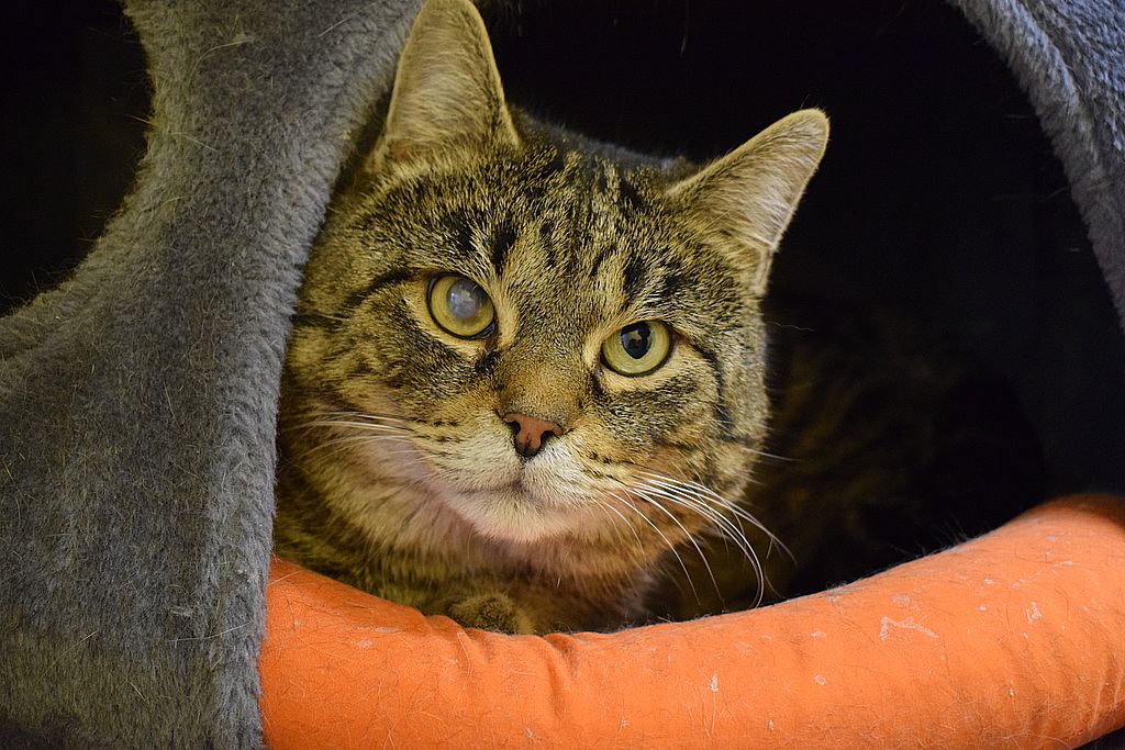 Zeus kam im Oktober zu uns. Er wurde bereits zwei bis drei Monate vorher immer wieder in Rimbach gesehen, jedoch konnten keine Besitzer gefunden werden. Der stattliche Kater ist insgesamt gesund, hat aber eine Trübung auf dem rechten Auge, die ihn glücklicherweise nicht weiter beeinträchtigt. Nach der Entwurmung und Impfung durfte er in den Vermittlungsbereich umziehen.