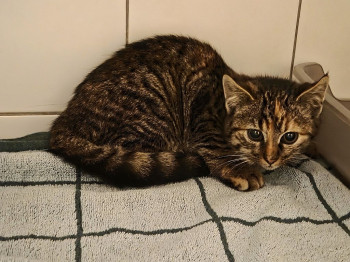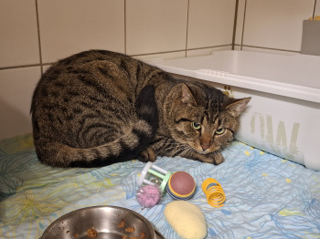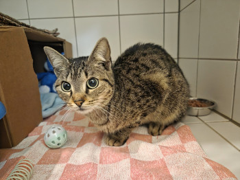 Am 15.10.25 abends wurde an der Total-Tankstelle in Dingolfing diese junge Tigerkatze gefunden. Sie ist etwa 10 Wochen alt und humpelt hinten rechts. Sie wurde am 16.10.25 zur weiteren Betreuung ins Tierheim gebracht.