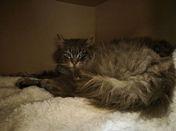 Dieser ängstlich-scheue, stark verfilzte Langhaarkater ist bereits im Herbst letzten Jahres in Eichendorf/ Prunn gesehen worden. Es waren damals zwei unbekannte Kater dort unterwegs, von denen einer ím August 2025 gesichert und ins Tierheim gebracht wurde. Der zweite Kater war damals wieder verschwunden und ist nunmehr wieder aufgetaucht. Iin einem noch verwahrlosteren Zustand konnte er nunmehr gesichert und ins Tierheim gebracht werden. Er ist nicht kastriert und nicht gechipt.