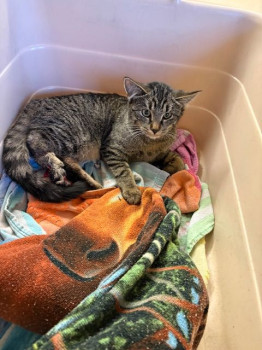 Der kleine Kater wurde daraufhin gesichert und mit zu einem Tierarzt genommen.