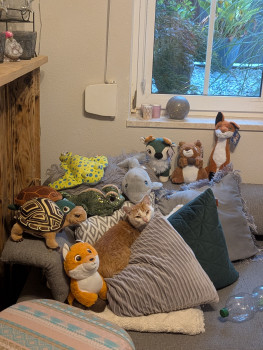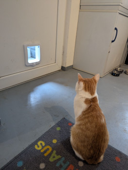 Seitdem wohnt er bei den Findern in der Kellerwohnung und könnte durch die Katzenklappe jederzeit ein und aus. Jedoch möchte er nicht mehr gehen und liegt fast den ganzen Tag auf der Couch oder in seinem Körbchen. Er dreht nur ab und an eine kurze Runde im Garten oder in der Nachbarschaft.
