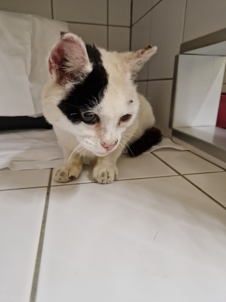 In Landau, Gansmühlstraße, wurde dieser weiß-schwarze Kater gefunden. Er wurde ins Tierheim gebracht, weil er ein schlimm aussehendes Ohr hat (vermutlich Plattenepithelkarzinom). Es handelt sich um einen kastrierten Kater, der leider nicht gekennzeichnet ist. Er ist lieb und zutraulich.