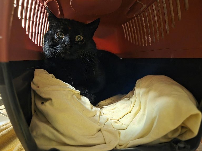 Dieser sehr scheue schwarze, leider nicht kastrierte und nicht gekennzeichnete Kater ist bereits im Herbst 2025 bei den Findern aufgetaucht. Leider blieb die Suche nach den Besitzern erfolglos. Er wurde nunmehr zur weiteren Betreuung ins Tierheim gebracht.