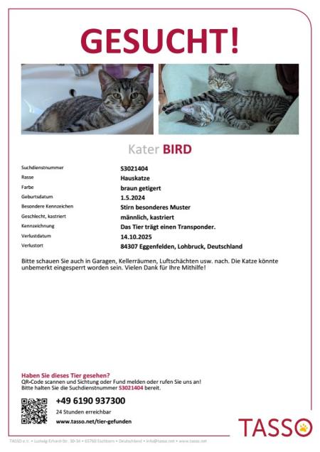 Nala ist gechipt. Sie wurde auch ein paar mal gesichtet, das letzte Mal allerdings am Freitag, den 03.10.25 um ca. 19:00 Uhr. Sie ist etwas verfressen und teils auch sehr neugierig. Bitte auch in Garagen, Kellern, Scheunen und Schupfen nachsehen! Vielen Dank!