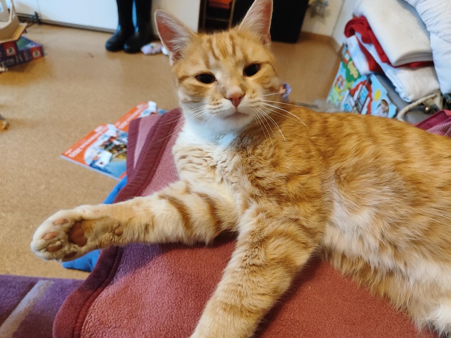 Sehr großer Kater, hört gut auf den Namen Xavi. Maunzt viel, hat ein sehr lautes Organ. Gechipt und Kastriert.
