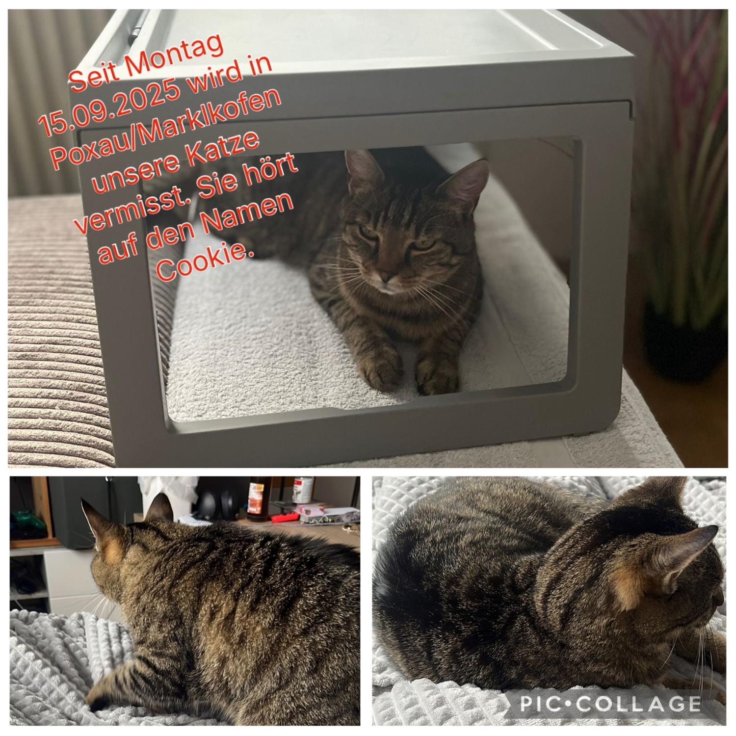 Unsere Katze Mogli war das letzte Mal am Montag den 01.09.2025 Daheim! Sie ist sehr dünn, dunkel getigert mit weißem Unterfell! Normalerweise ist sie sehr scheu! Bei Sichtung bitte melden unter 01756900814!