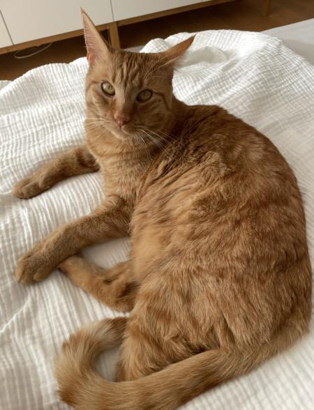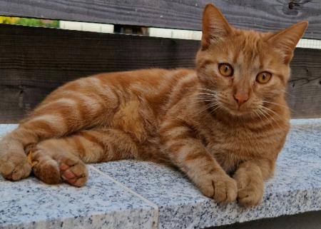 Farbe: rot An der unteren Lippe hat er einen schwarzen Fleck. Am Bauch ist im Moment weniger Fell. Kastriert und gechipt. Er ist eig. eher scheu zu Fremden. Freigänger. Hält sich immer bei den Feldern auf. Und kommt dann immer pünktlich nach Hause.